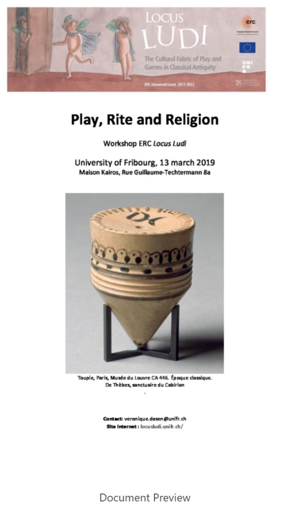 Workshop ERC Locus Ludi “Play, Rite and Religion”